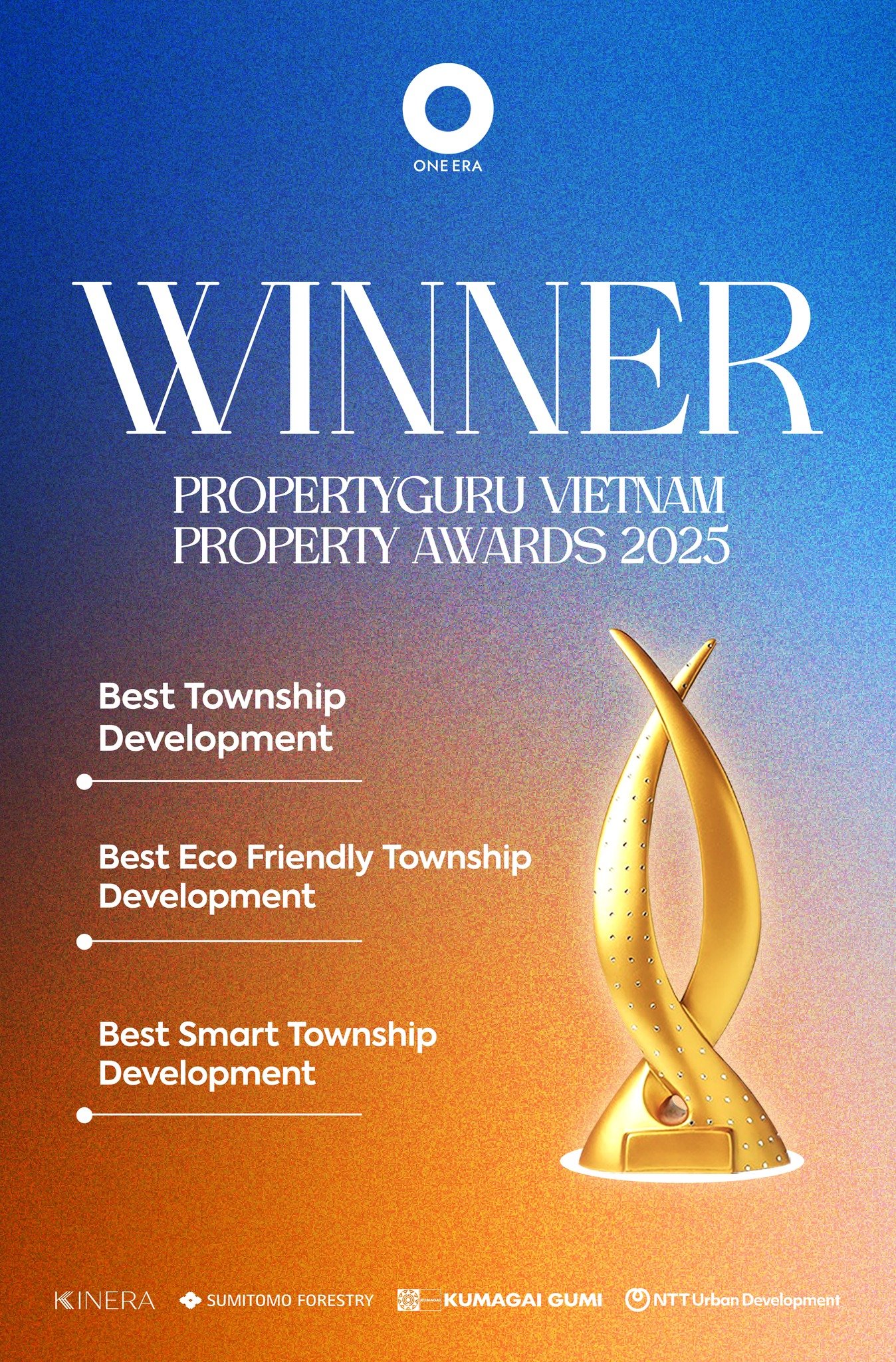 Ngày 24/10/2025, Hoa Lan TownShip JVC chủ đầu tư dự án One Era do đại diện nhà phát triển bất động sản KINERA đã vinh dự nhận 3 giải thưởng danh giá dành cho dự án ONE ERA. Giải thưởng được bình chọn bởi PropertyGuru – Tập đoàn công nghệ bất động sản hàng đầu Đông Nam Á lần thứ 11 tại Tp.HCM.